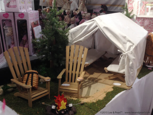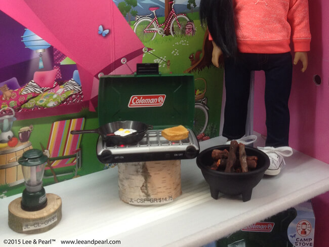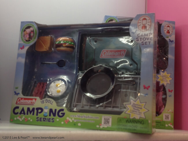 A year ago, in 2014, Sophia’s® showed a prototype of a miniature Coleman™ cooler that was the cutest thing in their booth. This year they have a whole Coleman™ camping collection and it’s wonderful. This is a big step for Sophia's®, which has shown quality products before, but with color and design elements clearly pitched at very young girls. The realistic Coleman™ branded camping gear should appeal to doll lovers of every age. This is what I mean when I say that American Girl’s competitors are closing the gap: these pieces are cute, realistic and well priced. The Coleman™ tent is structured like a modern tent. The iconic stove and lantern don’t have heart cut-outs: they are miniatures of the real thing. As a doll-lover and as a camping-lover, I want them!