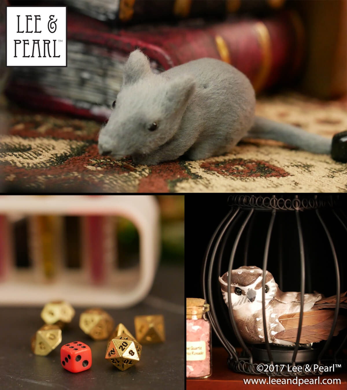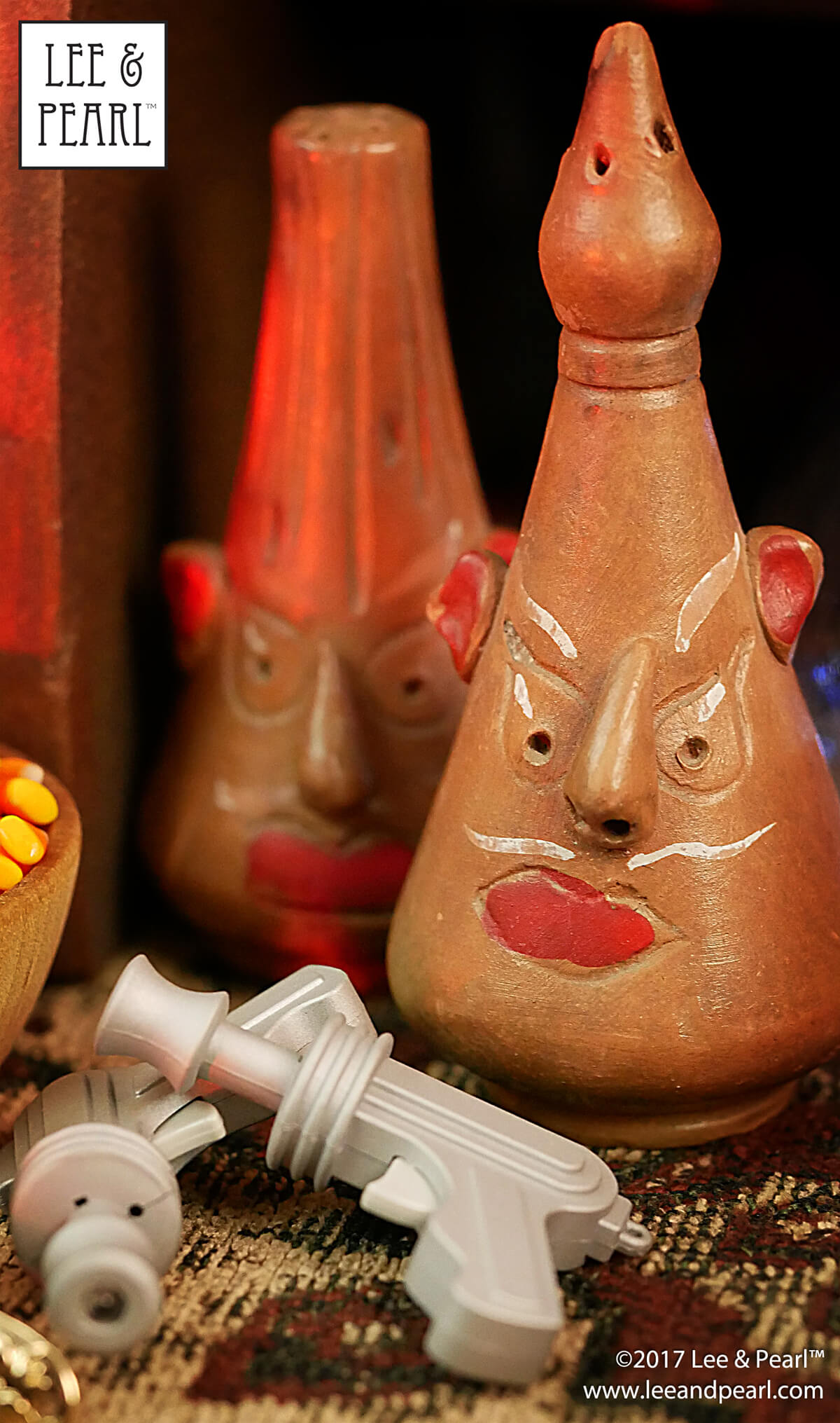 Then we scoured our prop boxes for miniature Dungeons & Dragons dice from eBay, lab and science toys from various Our Generation™ kits, tiny ray gun key chains, dollar store charms, and Christmas ornament and party store miniature toys. We even hit up the kitchen for a pair of vintage Tiki salt and pepper shakers.